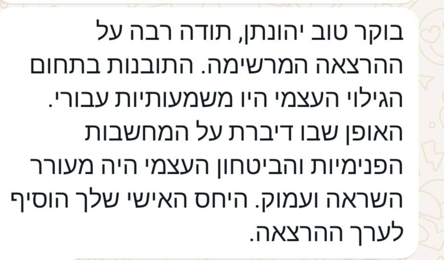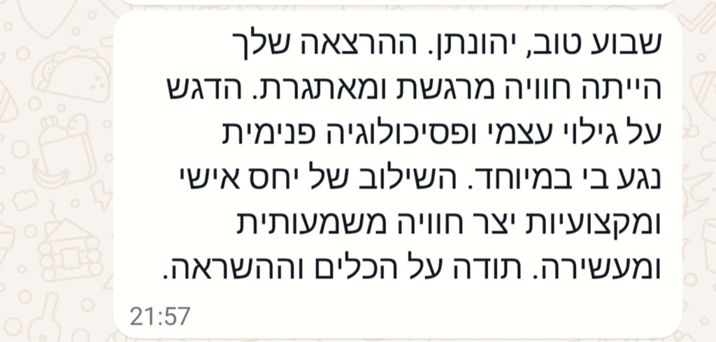 אני מזמין אתכם למסע מרתק אל תוך עצמכם – עם סיפורים, תובנות וכלים פרקטיים שילוו אתכם הרבה אחרי שהאורות באולם יכבו.
