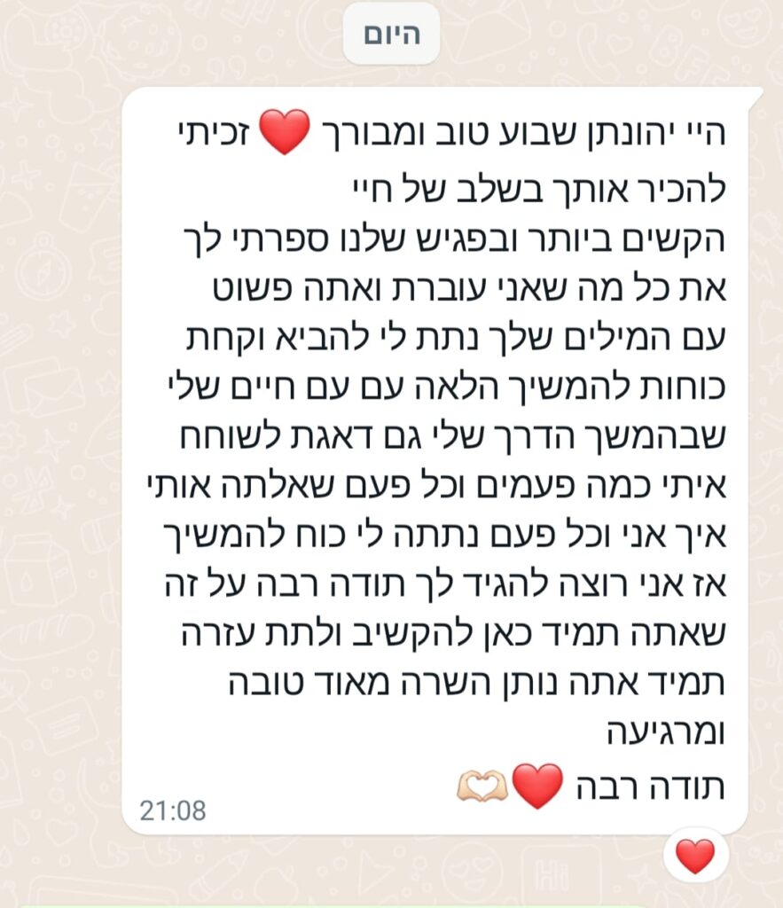 המסע שלי התחיל מתוך כאב אישי והפך לשליחות: לעזור לאנשים לגלות איך גם מתוך השברים אפשר לצמוח לחיים מלאי משמעות ואהבה.
