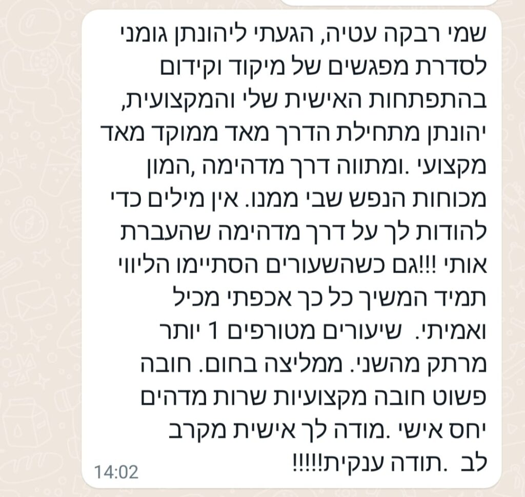 אני משלב מקצועיות עם חום ואותנטיות, ומעניק כלים פרקטיים שכבר מהפגישה הראשונה מאפשרים שינוי אמיתי.